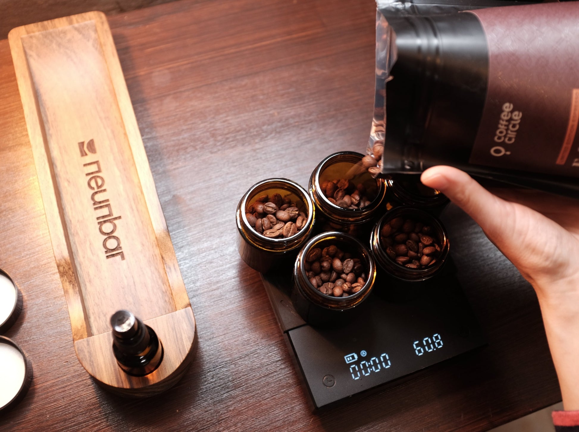 Wide opening. From the Coffee bag directly into the containers. Each container can hold up to 25g (+/- 2g).